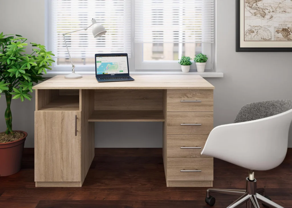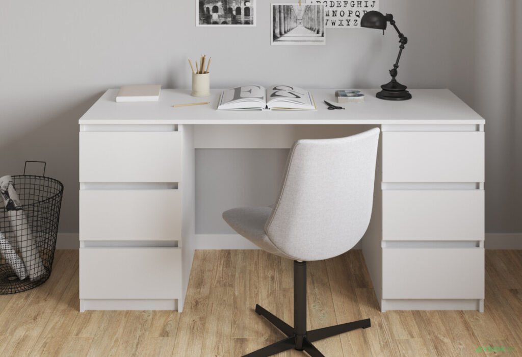 Письмовий стілл із шухлядами дозволяє підтримувати порядок, адже всі дрібниці мають своє місце. Водночас це робить робочу зону більш охайною та приємною для щоденного використання.